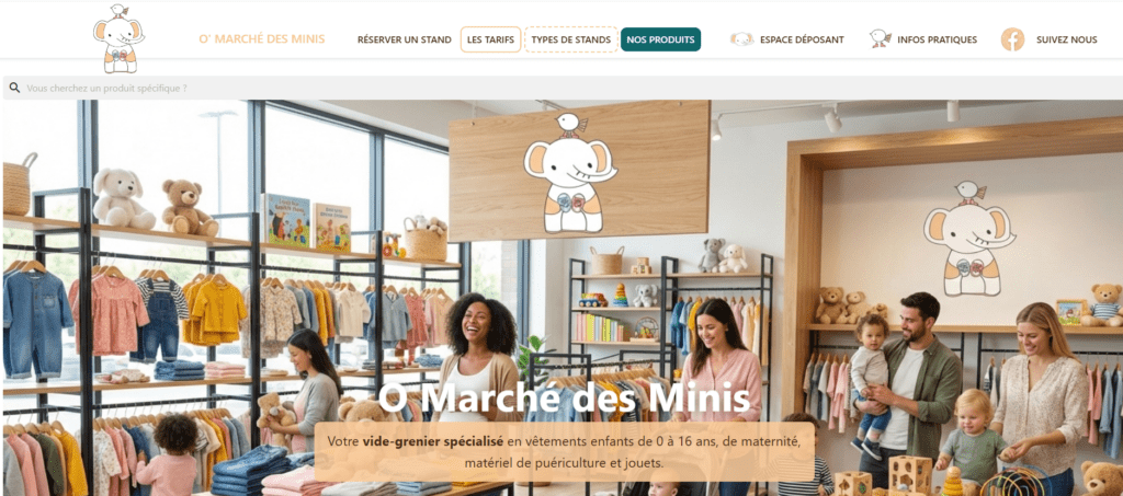 C’est avec beaucoup de fierté que notre société accompagne Melissa une jeune maman active pour annoncer en avant première l’ouverture de O’ Marché des Minis, un nouveau vide-grenier permanent spécialisé en vêtements enfants de 0 à 16 ans, de maternité, matériel de puériculture et jouets, qui promet de devenir un lieu incontournable pour les chineurs, les familles et les passionnés de bonnes affaires.